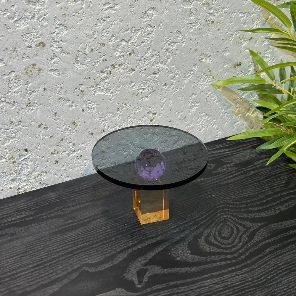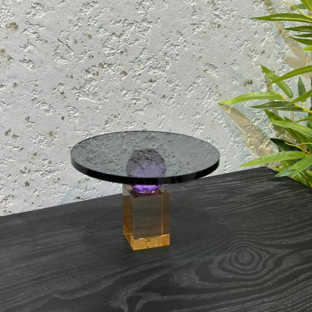استاند - صحن تقديم بقاعدة - ضيافة كلاسيكي فاخر كرستال بقاعدة ــ اسود بنفسجي عسلي ــ15×15×10سم