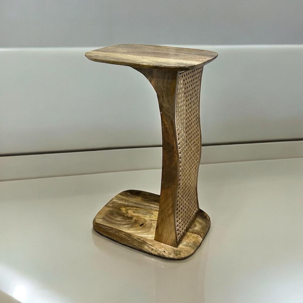طاوله هندي خشب طبيعي مع راتان بني فاتح 39×29×61سم