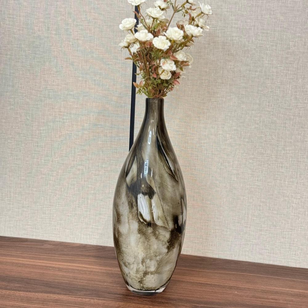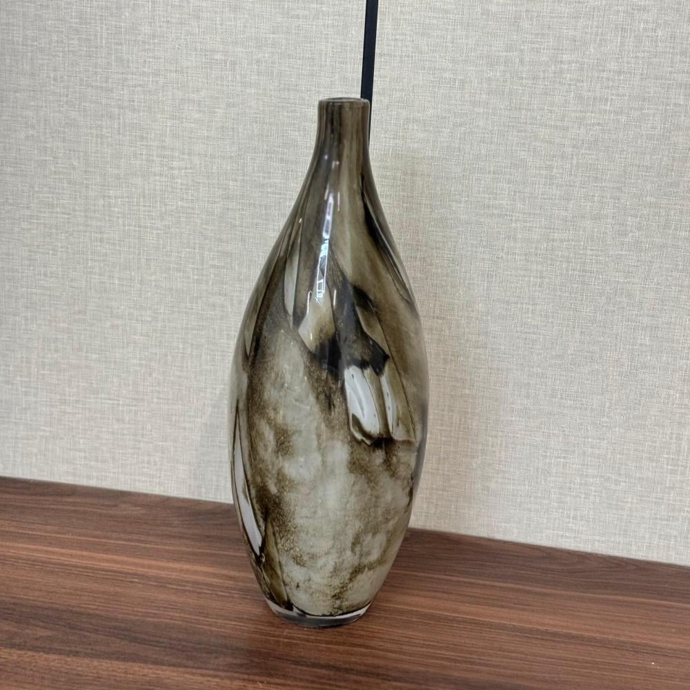 ١٠٧٫١١مزهرية فاخرة بتصميم فني مميز، مصنوعة من الزجاج عالي الجودة بتدرجات ألوان متداخلة بأسلوب عشوائي أنيق يمنحها طابعاً فنياً فريداً. شكلها الانسيابي العمودي يجعلها مثالية لتزيين الطاولات أو زوايا المجالس، سواء مع الورود الطبيعية أو كقطعة ديكور قائمة بذاتها. قطعة تضيف لمسة من الفخامة والجرأة العصرية لأي مساحة داخلية