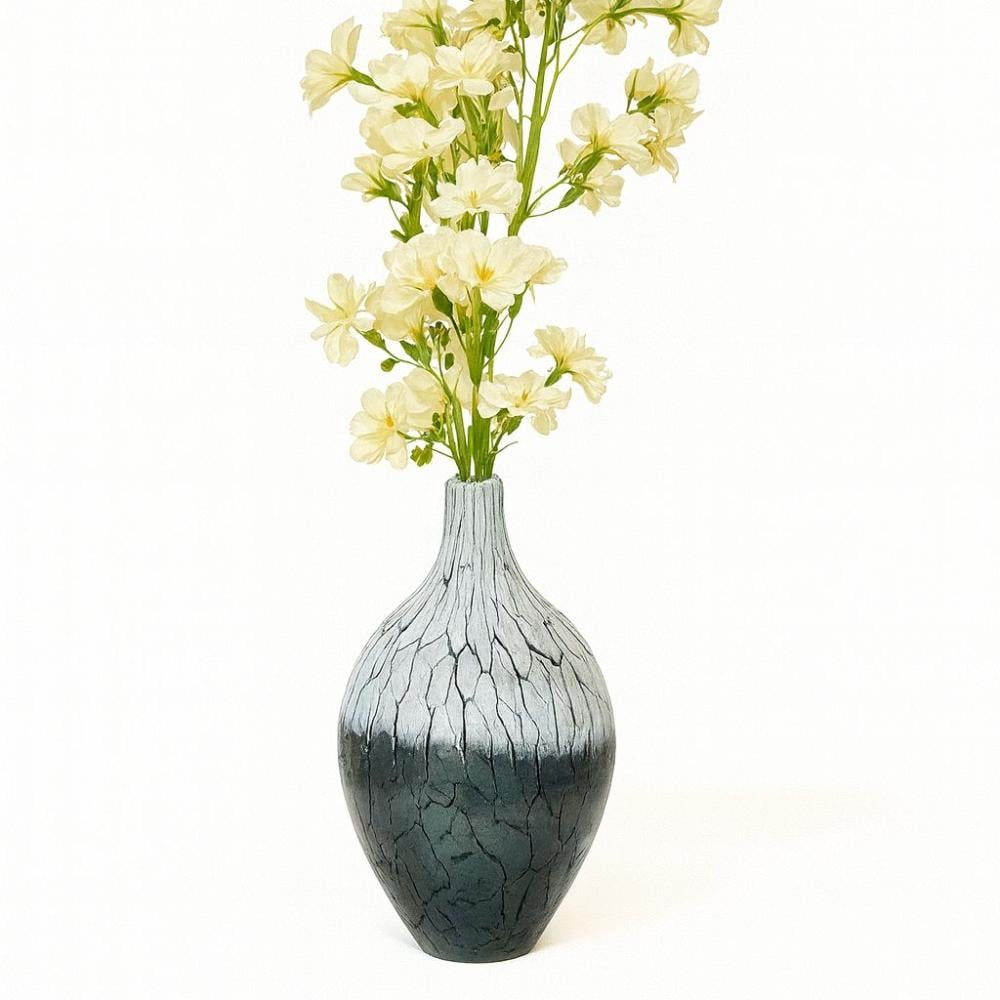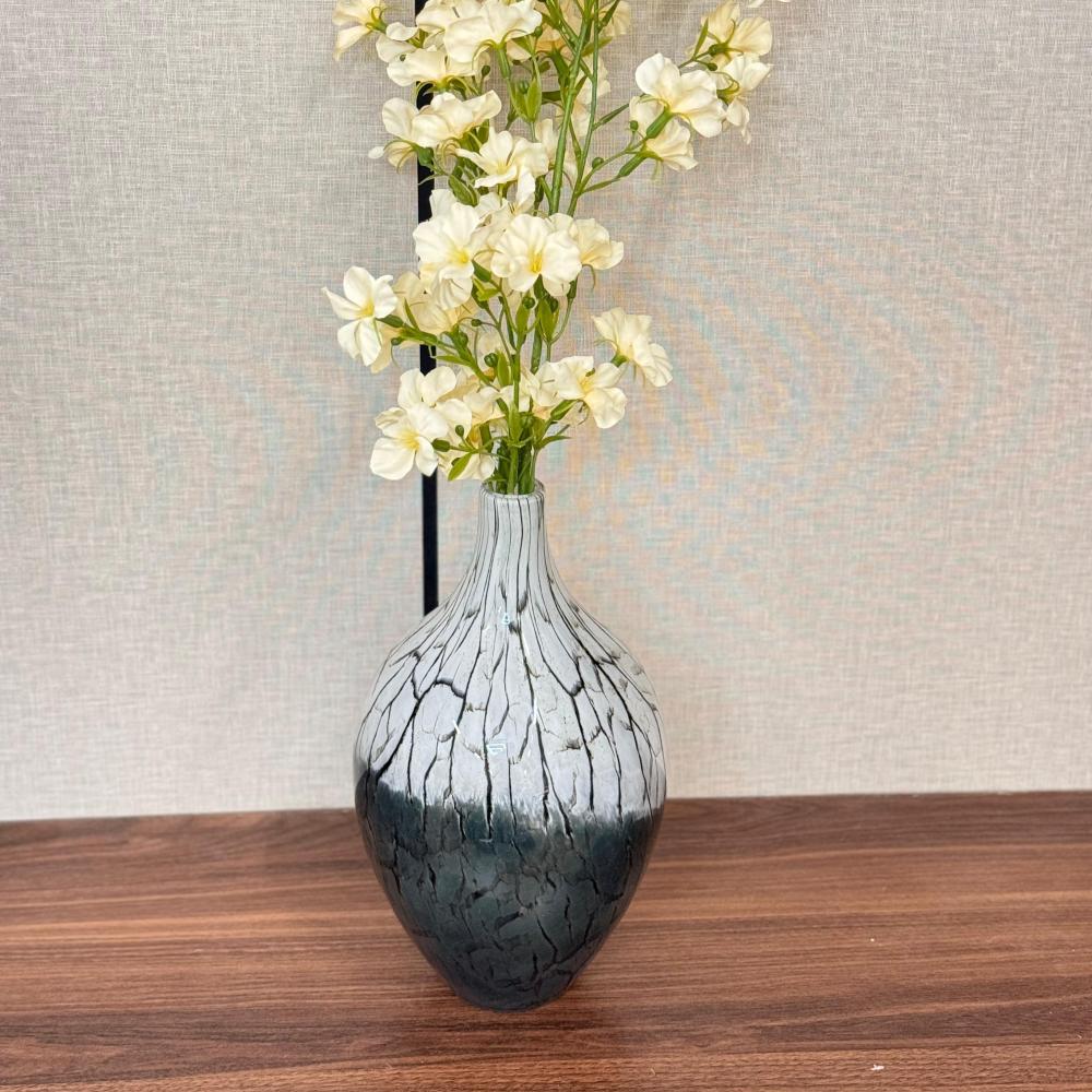 ١٠٧٫١١مزهرية فاخرة بتصميم فني مميز، مصنوعة من الزجاج عالي الجودة بتدرجات ألوان متداخلة بأسلوب عشوائي أنيق يمنحها طابعاً فنياً فريداً. شكلها الانسيابي العمودي يجعلها مثالية لتزيين الطاولات أو زوايا المجالس، سواء مع الورود الطبيعية أو كقطعة ديكور قائمة بذاتها. قطعة تضيف لمسة من الفخامة والجرأة العصرية لأي مساحة داخلية