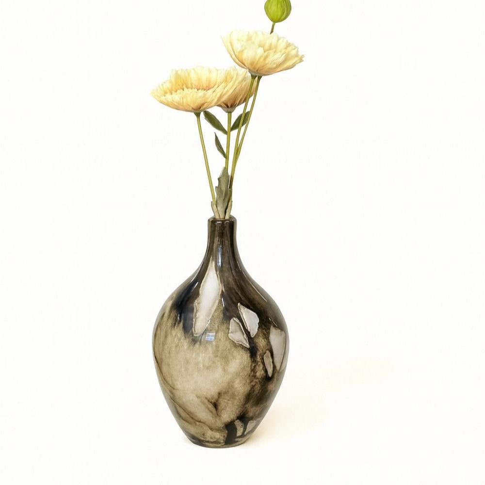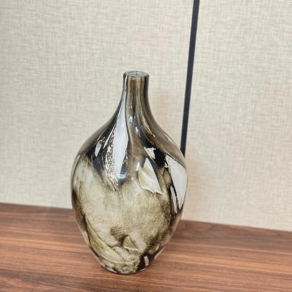 ١٠٧٫١١مزهرية فاخرة بتصميم فني مميز، مصنوعة من الزجاج عالي الجودة بتدرجات ألوان متداخلة بأسلوب عشوائي أنيق يمنحها طابعاً فنياً فريداً. شكلها الانسيابي العمودي يجعلها مثالية لتزيين الطاولات أو زوايا المجالس، سواء مع الورود الطبيعية أو كقطعة ديكور قائمة بذاتها. قطعة تضيف لمسة من الفخامة والجرأة العصرية لأي مساحة داخلية
