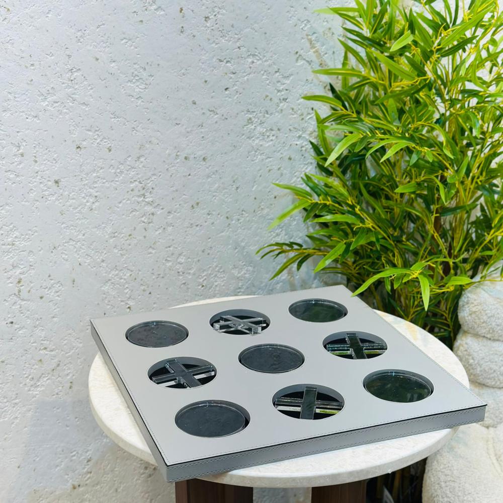 لعبة تيك تاك تو ديكور من الخشب ملبس جلد -40×40×10سم