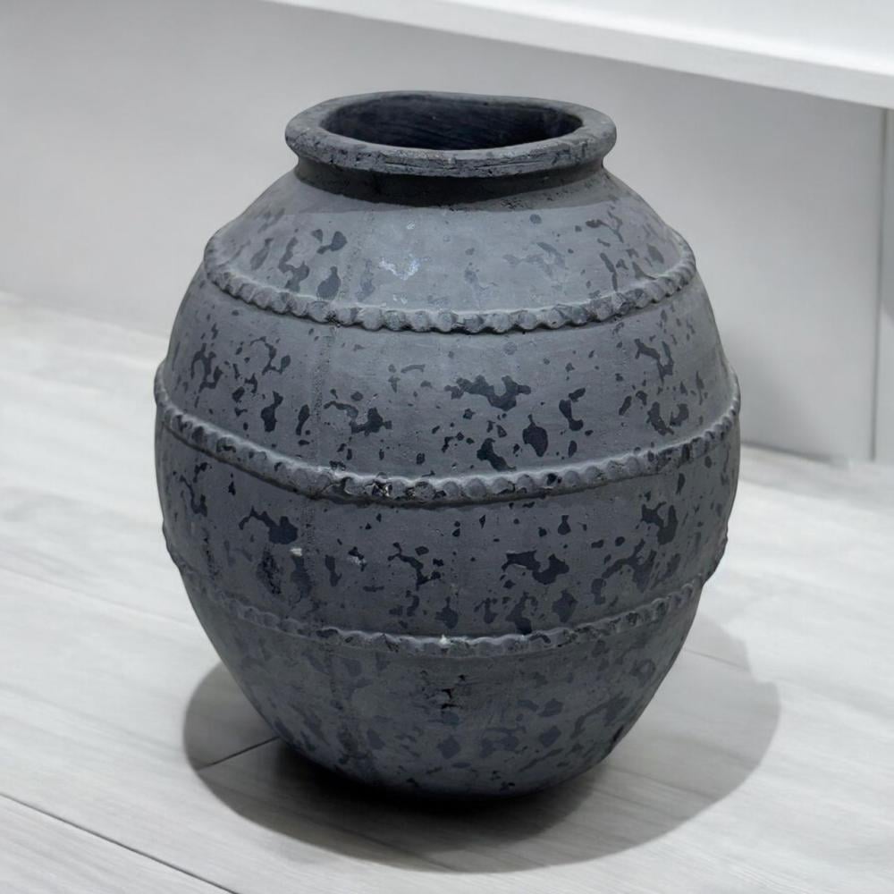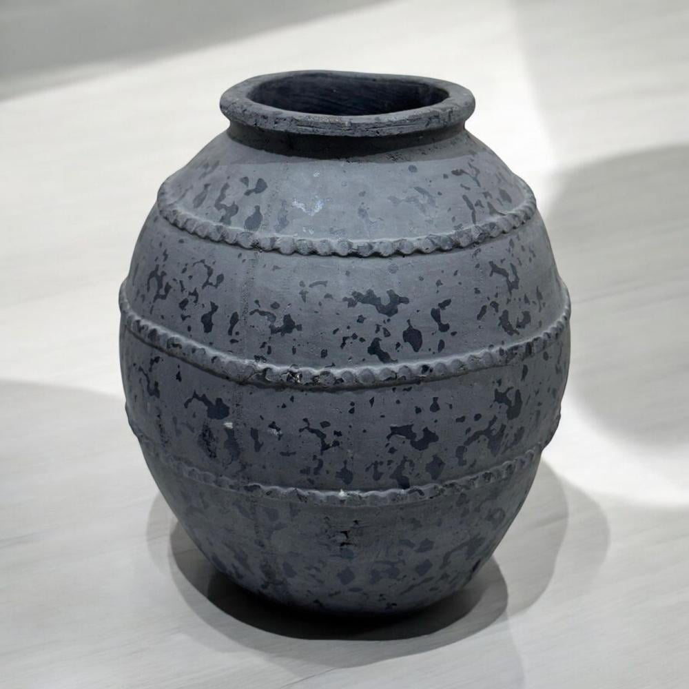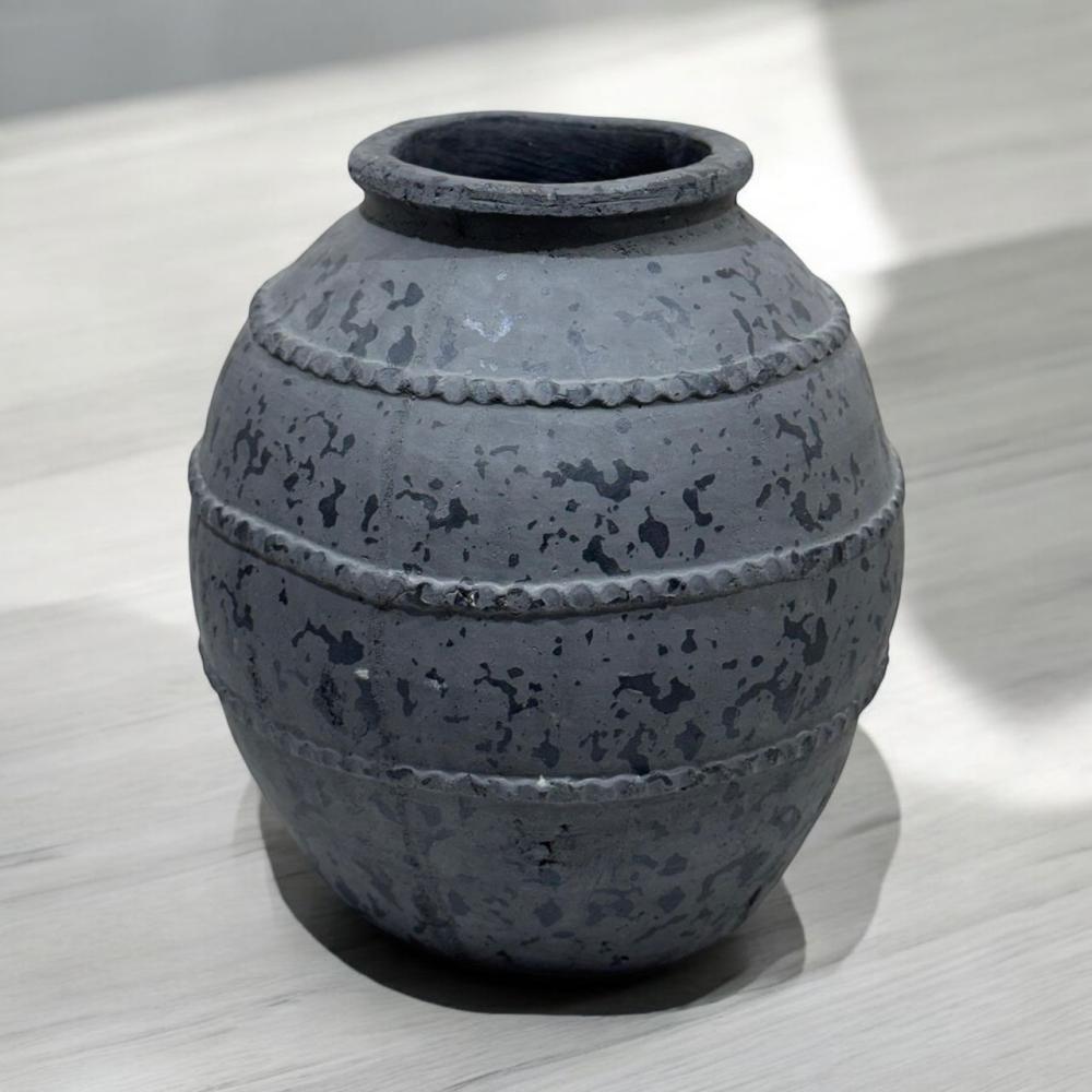 مزهرية سيراميك بتصميم كلاسيكي اسود رصاصي 27×12×12سم